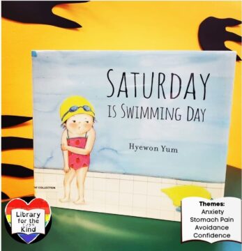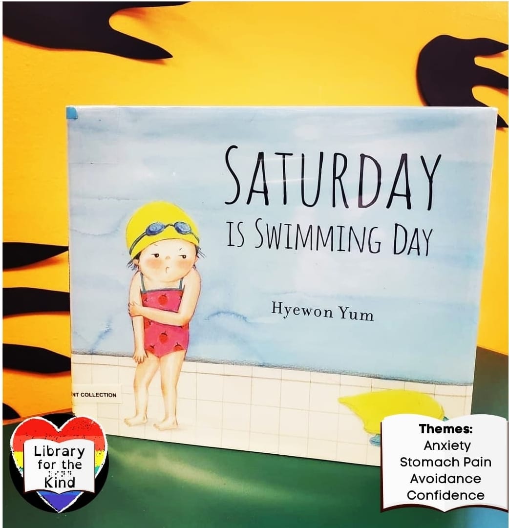 In this picture book the little girl has anxiety induced stomachaches. When waking up her stomach is pain but her mom encourages her to continue with her day. She does things to avoid going in the pool such as taking her time get ready and pretending she went in the water by wetting her hair. The swim teacher is very patient with her and instructs her separately to help her feel comfortable.