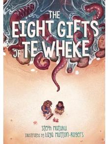 Tamati and his little sister, Aria, are playing on the beach when Aria hurts herself and can’t stop crying. Te Wheke, an octopus, hears her and says he can help. But he tricks Tamati by throwing him a gold coin and a shiny pearl, and while both Tamati’s hands are full, he snatches Aria. To save his sister, Tamati devises a plan to give the octopus eight gifts – one for each of its arms — so that he is forced to let go of Aria to hold them all. With the last gift, though, he tricks the octopus, throwing a snare that wraps around its body, and Tamati, Aria and Mum capture Te Wheke. (From GoodReads.)